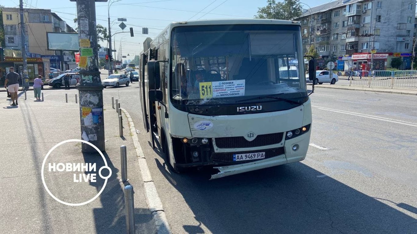 В Киве маршрутка с пассажирами попала в аварию: в салоне было 15 человек. Фото и видео