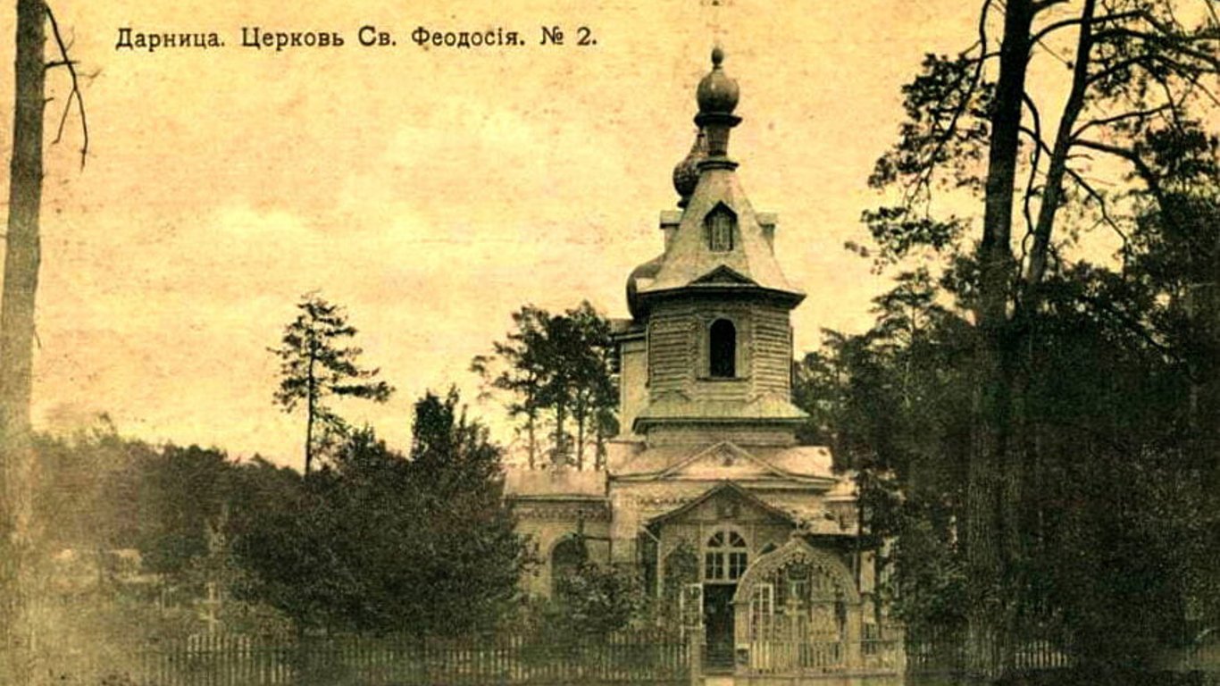 В сети рассказали историю храма святого Феодосия, который был расположен в дачно-железнодорожном поселке на Дарнице, в районе современной улицы Ялтинской. Его окончательно разобрали в 1962 году, во время антирелигиозной компании Никиты Хрущева.