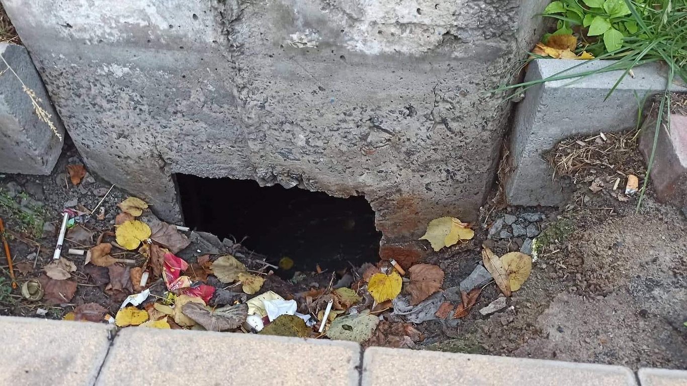 Они сообщают, что яма настолько большая, что в нее может провалиться ребенок, к тому же из нее постоянно вытекают нечистоты и заливают улицу.