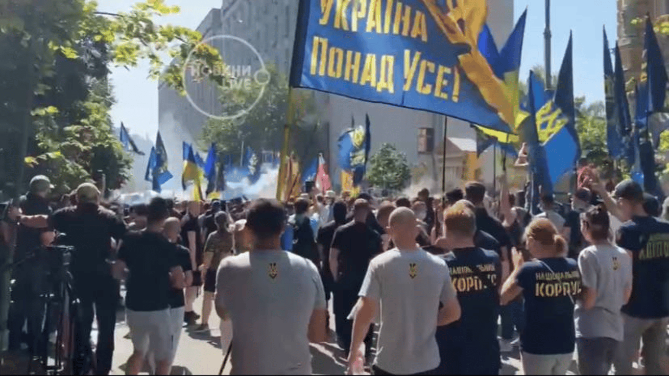 Представители "Национального корпуса" устроили митинг у офиса президента. Начались столкновения: пострадал один журналист.