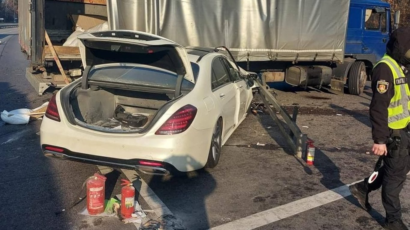 Напередодні у поліції Київської області повідомили, що аварія сталася о 10:50 у понеділок. Mercedes-Benz зіштовхнувся з фурою. За кермом був 32-річний чоловік.