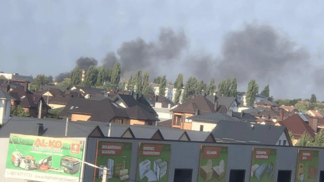 Стовп диму у Білій Церкві. Фото: Підслухано в БЦ