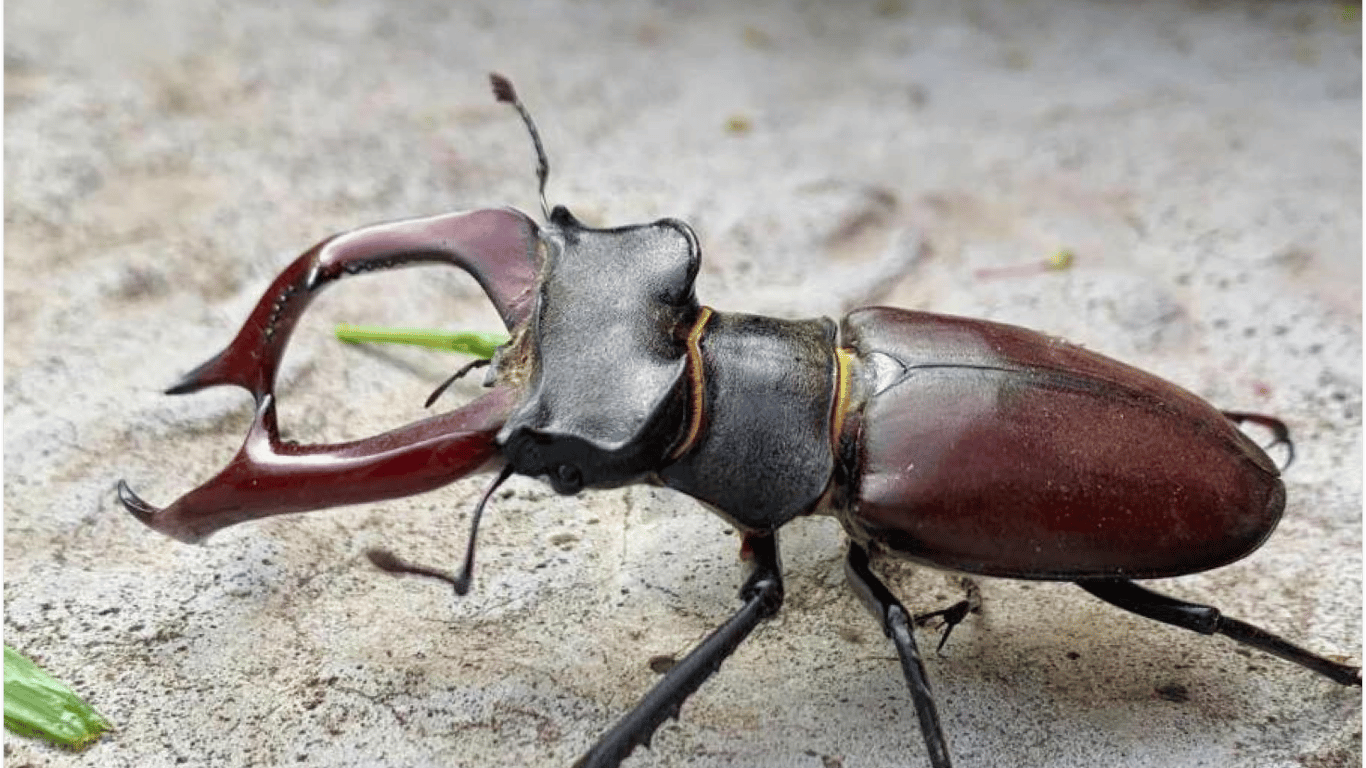 "Жук-олень – найбільший з твердокрилих фауни України, сягаючи, разом з "рогами", 8 см завдовжки", — йдеться у повідомленні.