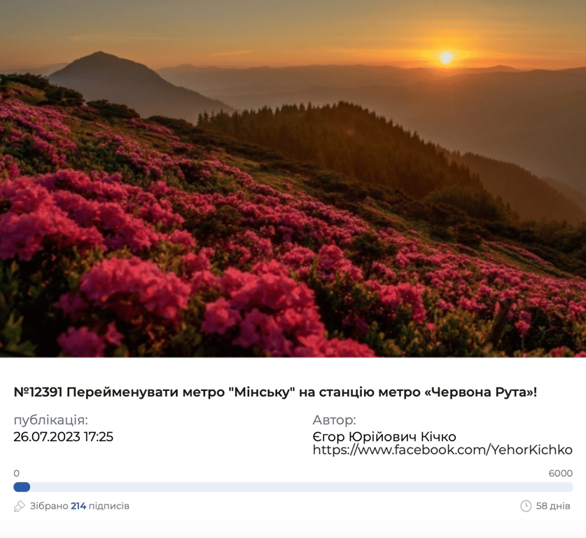 Наразі зібрано 214 підписів із 6 000 необхідних.