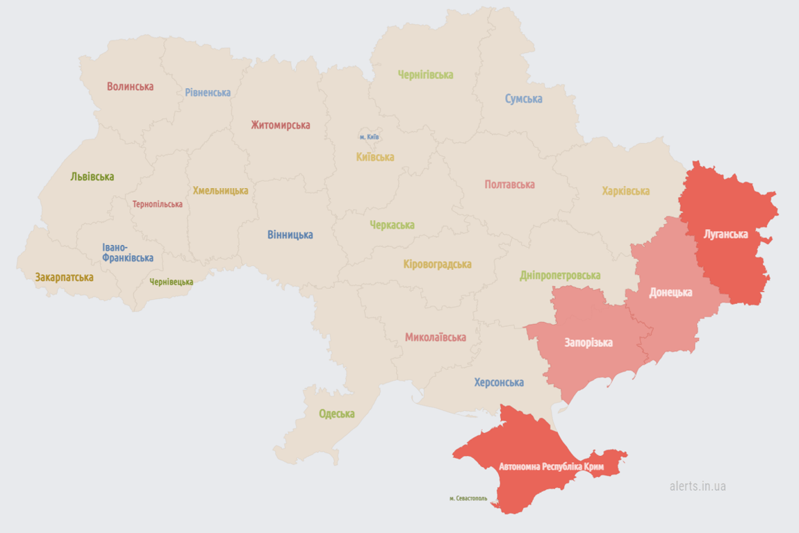 Станом на 16:40 повітряна тривога була оголошена по всій території України.