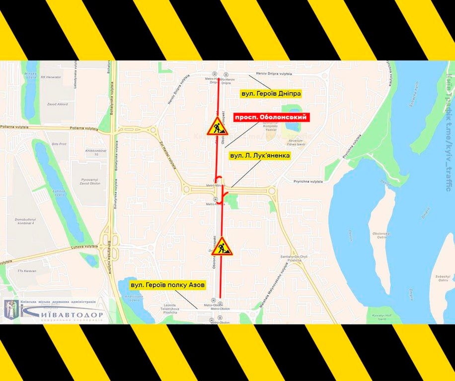 - у суботу дорожники працюватимуть на ділянці від вул. Героїв полку Азов до вул. Левка Лук'яненка в напрямку вул. Героїв Дніпра;