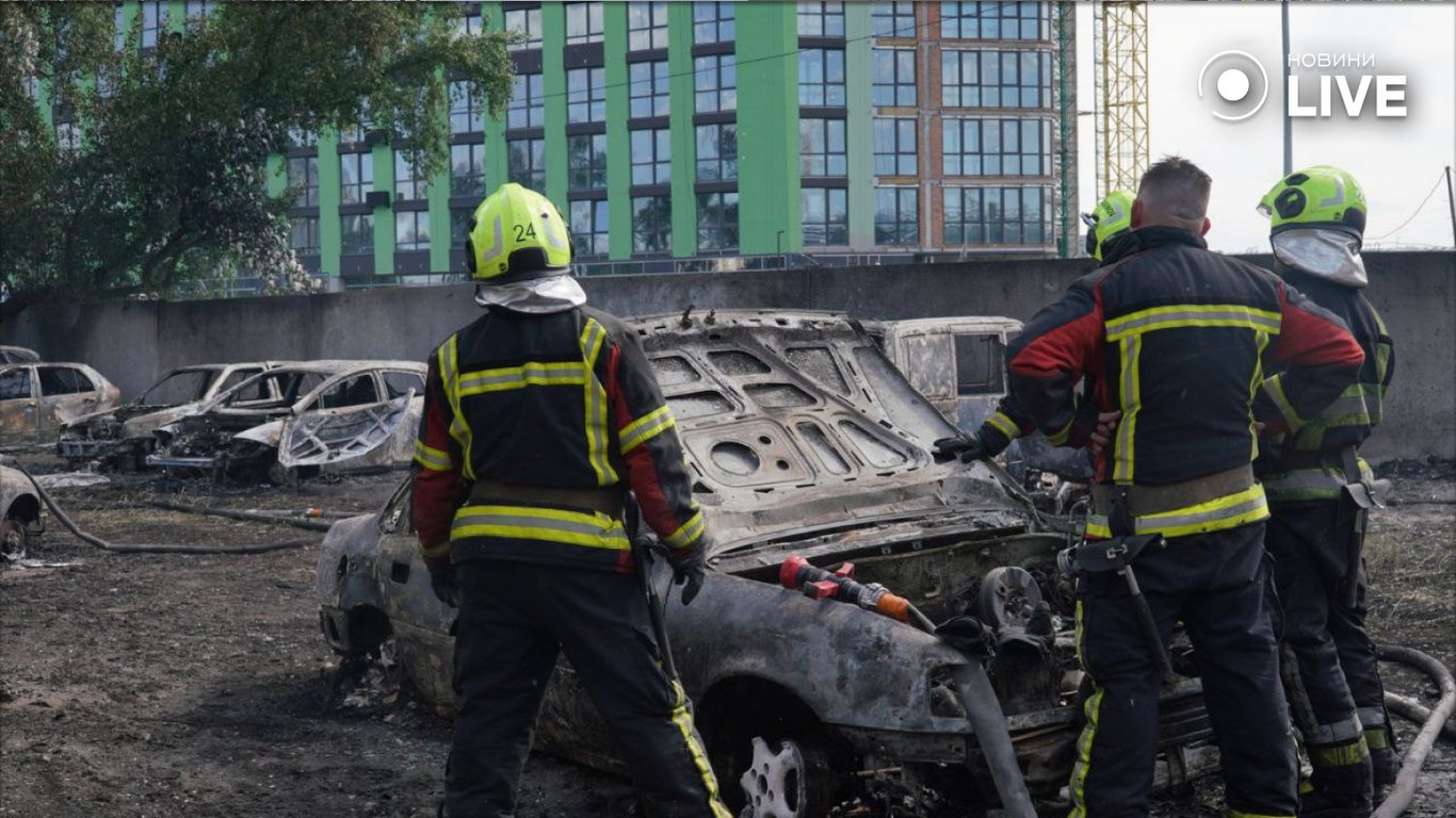 В ДСНС зауважили, що вогонь охопив близько 30 припаркованих легкових автомобілів, 10 мотоциклів та один автобус.