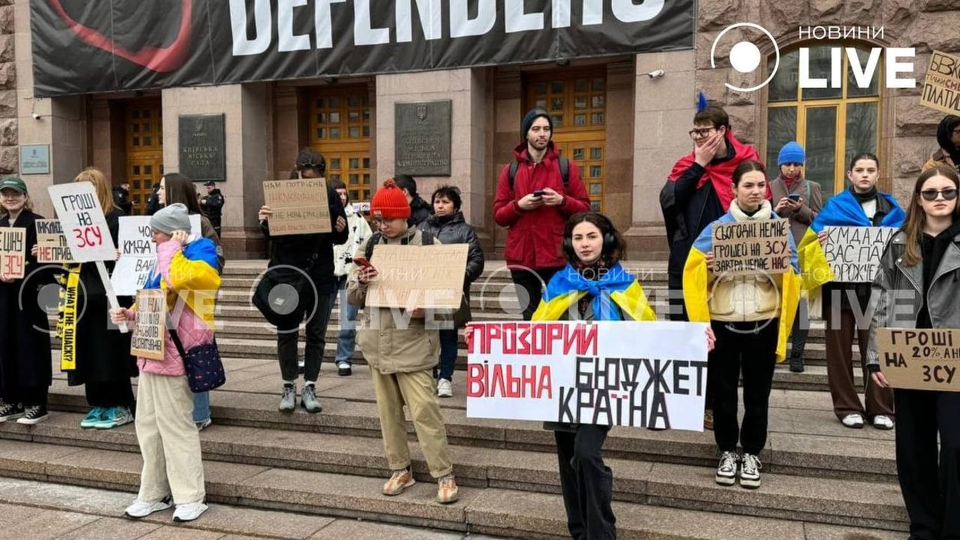У столиці в суботу, 23 березня, під будівлею Київської міської державної адміністрації відбулася акція. Учасники прийшли з вимогою виділити більше коштів для Збройних сил України.