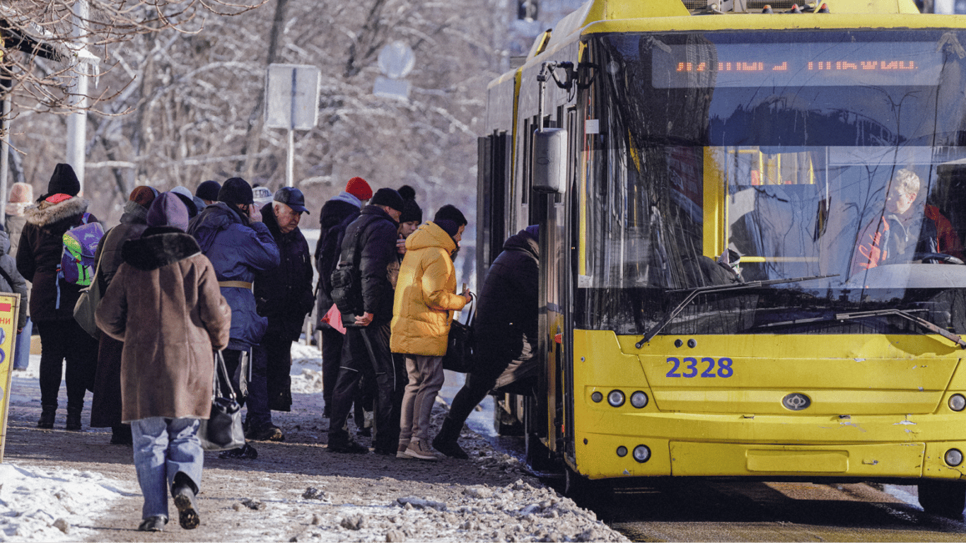 Люди заходять в автобус в Києві. Фото: Новини.LIVE