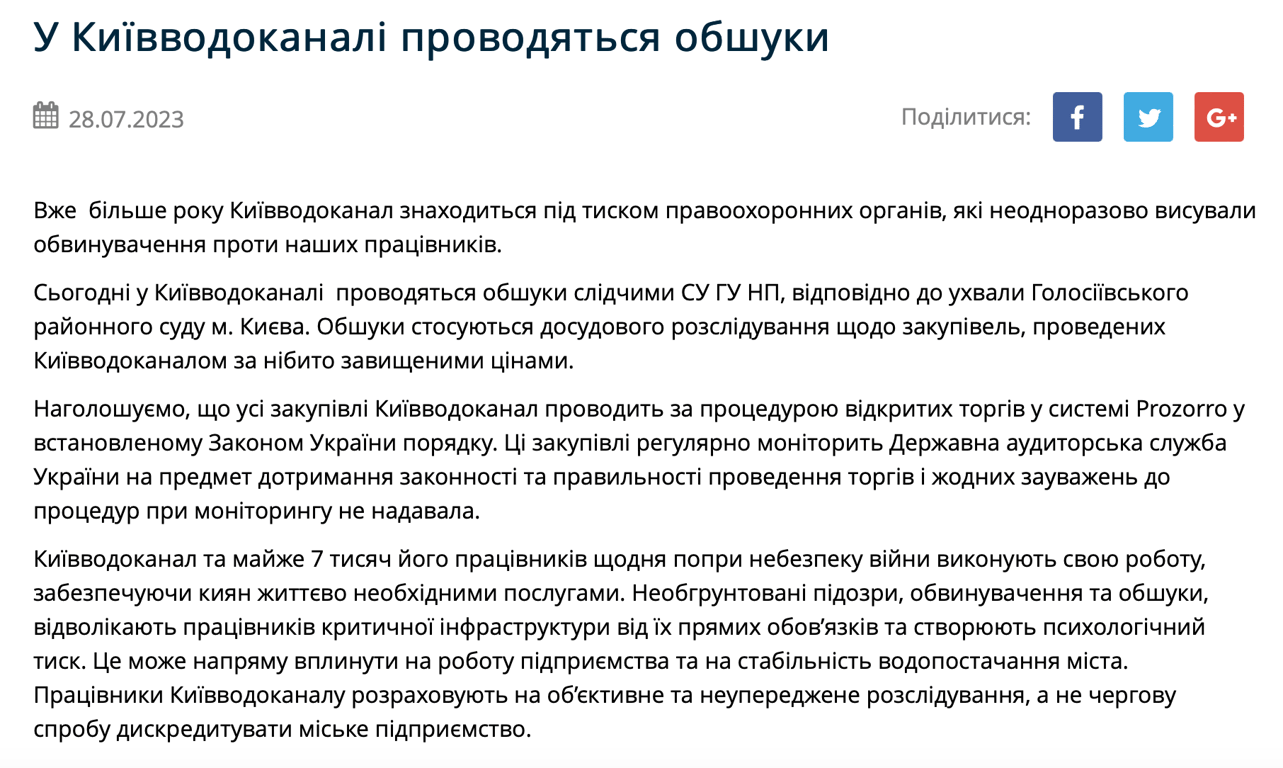 Додамо, що у Київводоканалі вже більше року "перебувають під тиском правоохоронних органів".