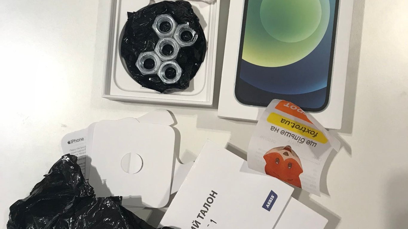 У Києві стався скандал. Дівчина купила в магазині Фокстрот Iphone, але замість телефону отримала акуратно упаковані гайки.