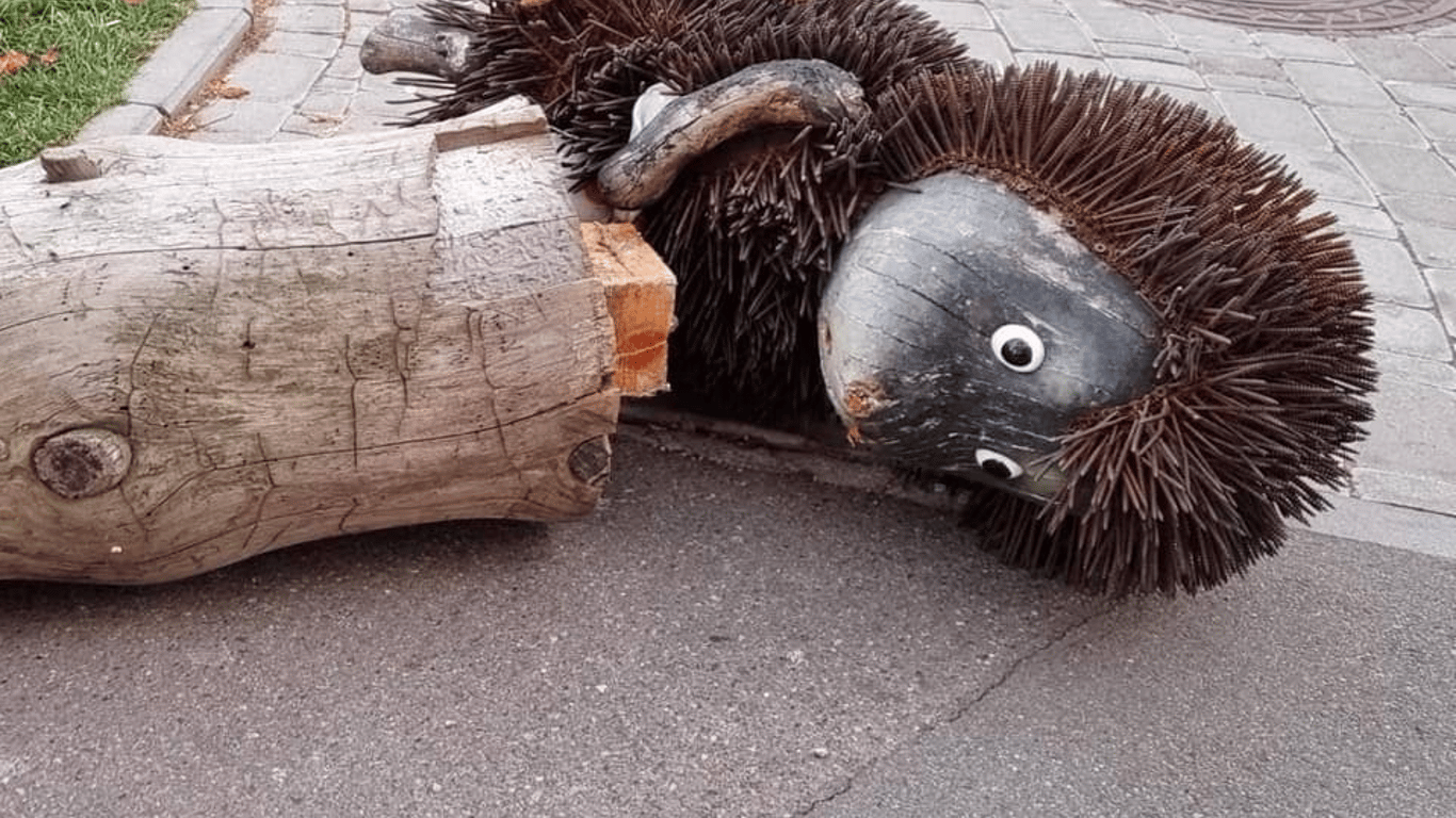 У Києві вандали познущалися над пам'ятником "Їжачок у тумані". Він стояв у сквері на вулиці Рейтерська.