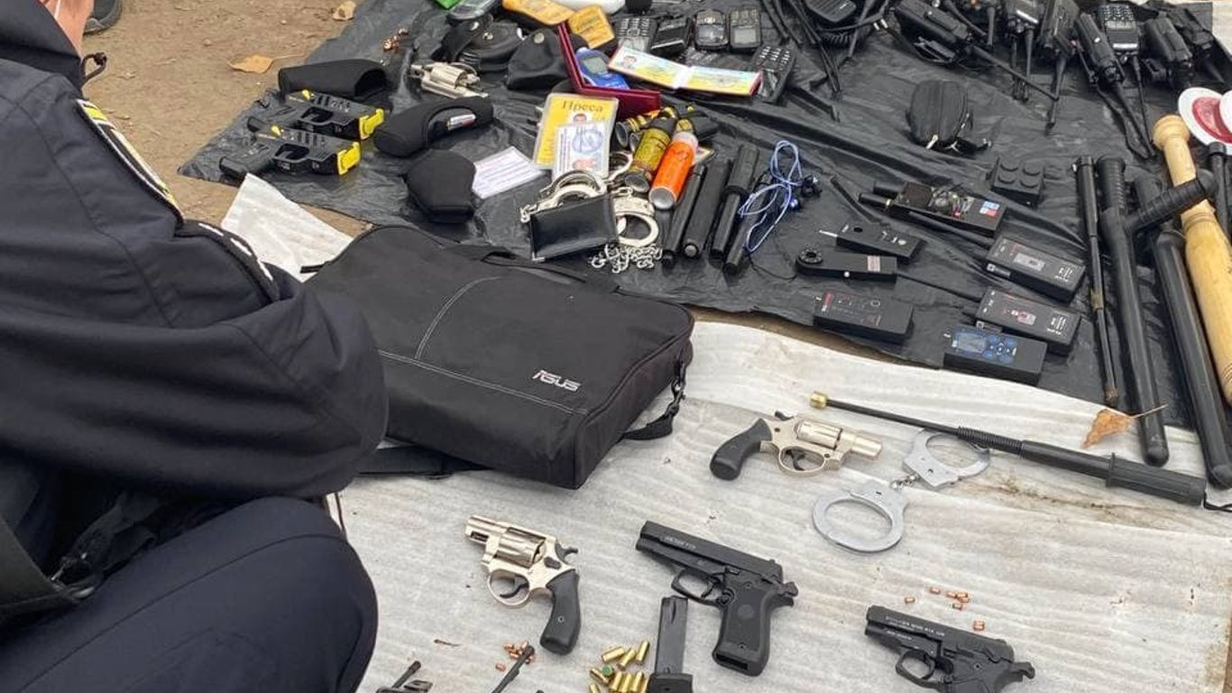 На місце одразу викликали слідчо-оперативну групу. В ході обшуку з авто дістали більше 10 рацій, чотири пістолети Флобер, два стартові пістолети, електрошокери Тейзер, інші спецзасоби, а такой "глушилки" та квадрокоптери.