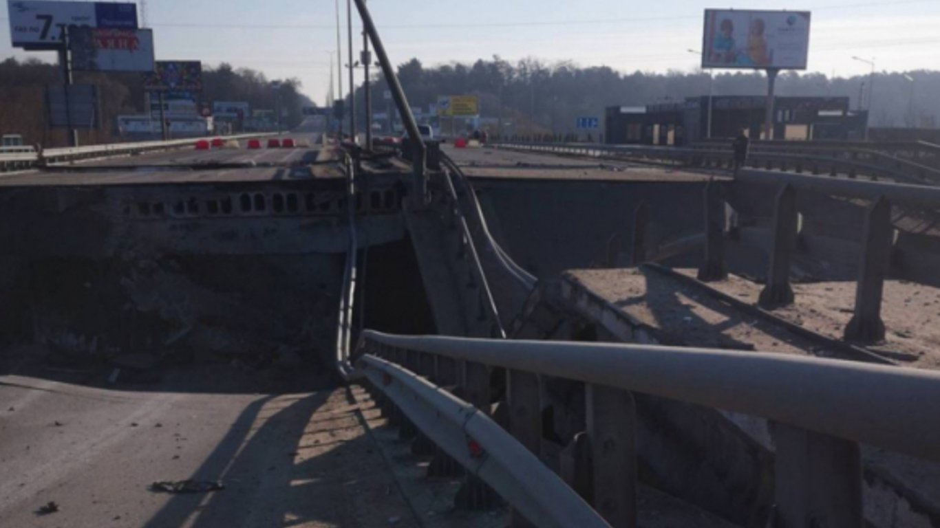 Міст на трасі Київ-Чоп, неподалік села Стоянка Київської області, підірвали. У зв'язку з цим проїхати з Києва у Житомир неможливо.