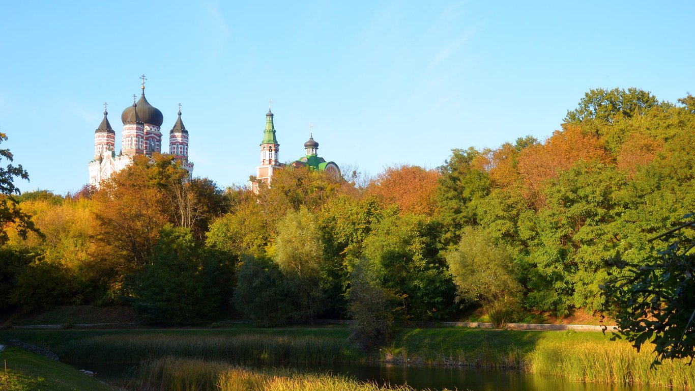 На високому пагорбі в глибині парку розташований неймовірної краси Свято-Пантелеймонівський монастир. Головна споруда - величезний собор Святого великомученика і Цілителя Пантелеймона, який зводився за проєктом відомого архітектора Євгена Єрмакова.