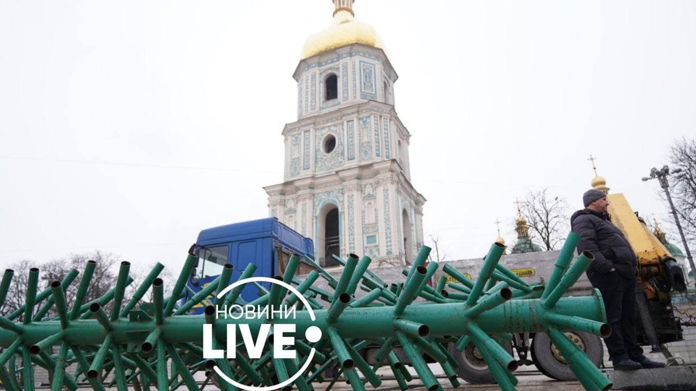На фото ми бачимо, що на Софійську площу вже привезли каркас для ялинки. Цілком можливо, що через кілька днів ми побачимо головну новорічну красуню України без прикрас.