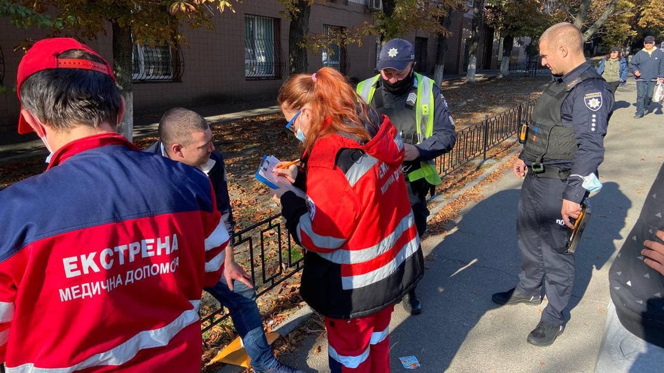 У інспектора зламаний ніс. Згодом на місце прибули швидка та поліція.