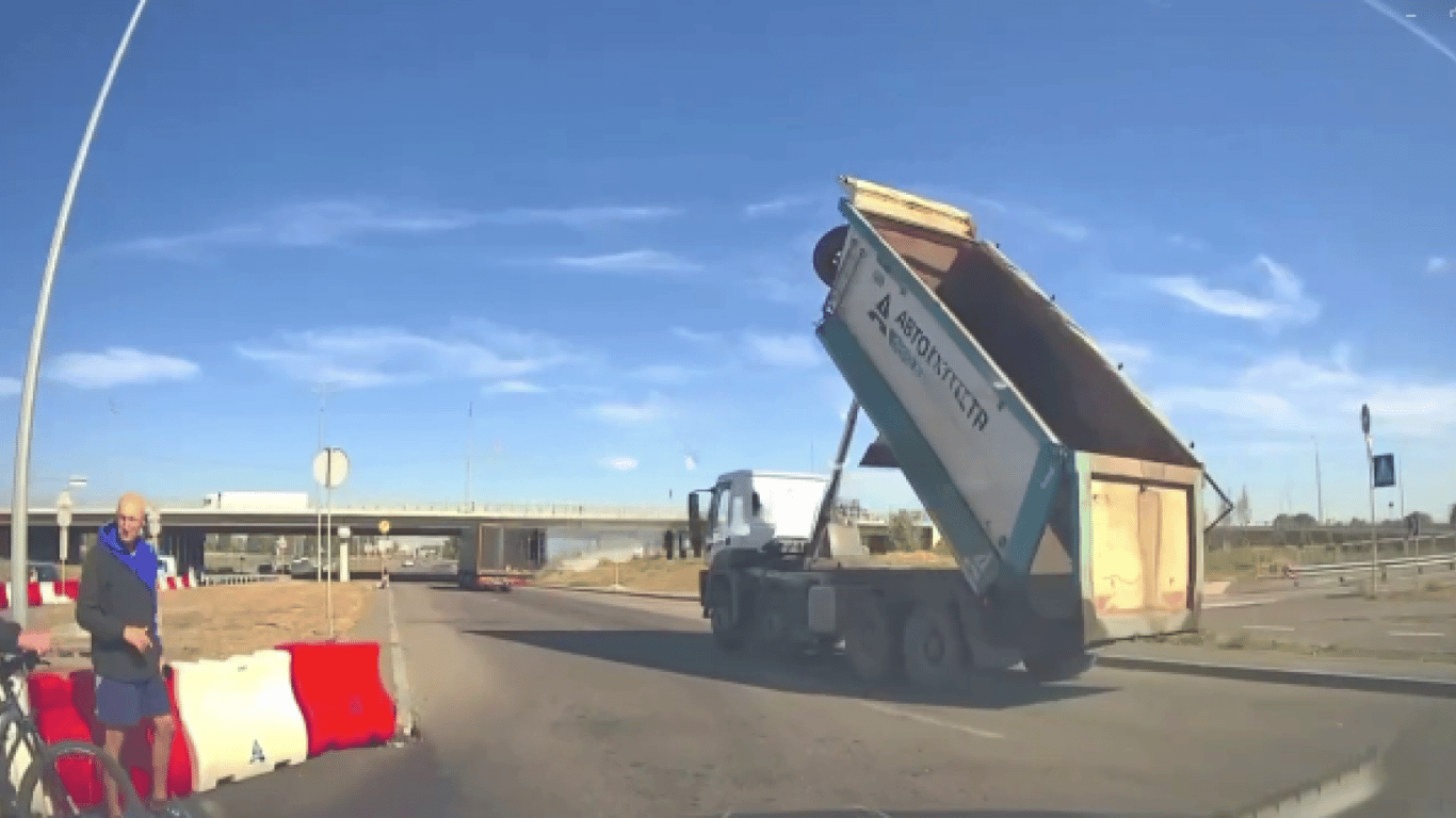 Вантажівка з відкритим причепом у Києві протаранила міст — відео
