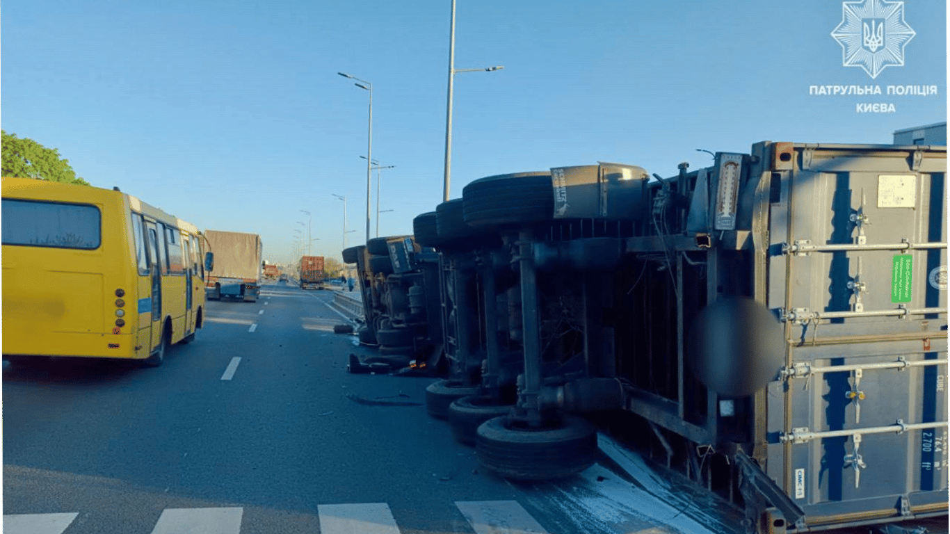 Вантажівка завалилася набік — у Києві на Кільцевій дорозі сталася ДТП