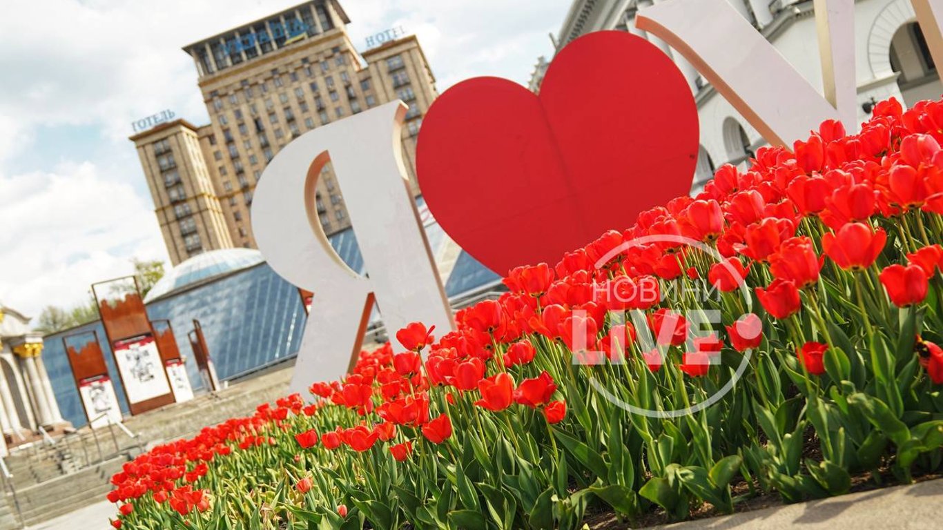 Червоні, жовті, ніжно-рожеві й навіть жовтувато-рожеві символи весни, ніби розкішний перський килим прикрашають Майдан Незалежності, площу перед будівлею МЗС України. Попри холодну весну, квіти вчасно розпустилися.