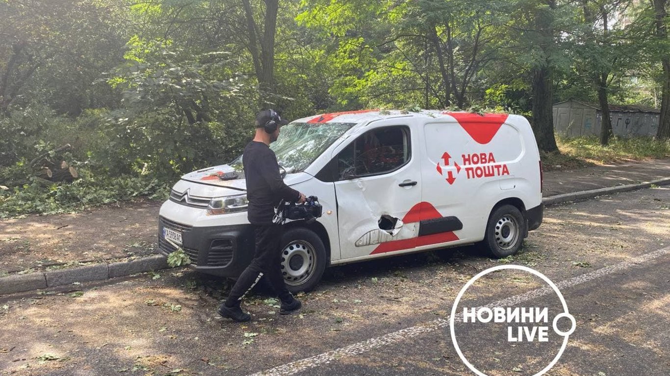 У ніч на 30 серпня, у Голосіївському районі Києва масивне дерево впало на автомобіль "Нової Пошти". На щастя, водію вдалося уникнути травм, пошкодило лише автомобіль.