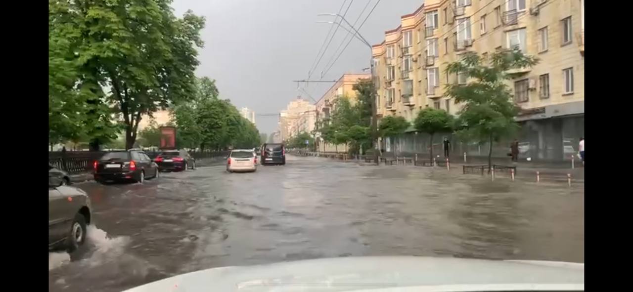 Сьогодні українську столицю охопила справжня буря. У Києві пройшов сильний дощ з грозою, підтопило багато вулиць.