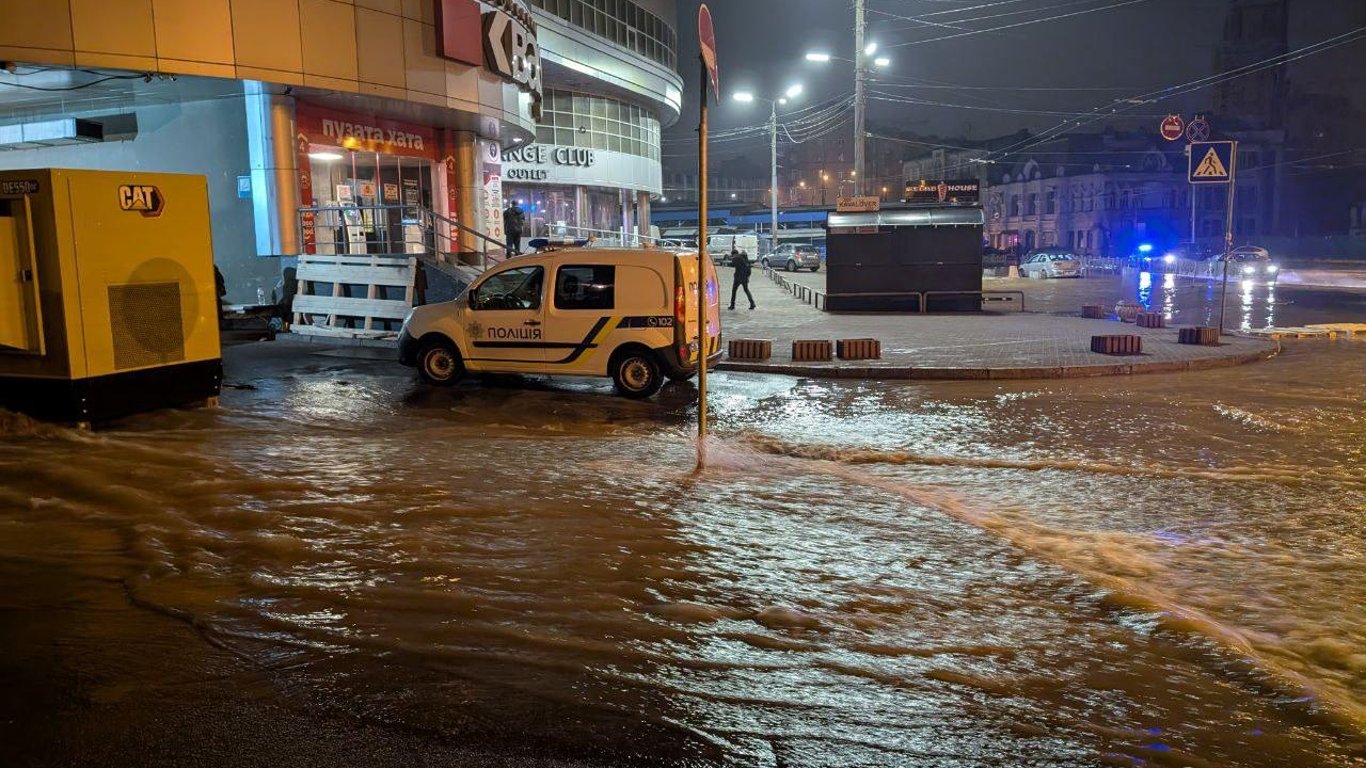 Оновлено о 07:09: Унаслідок обстрілу прорвало трубопровід і затопило дорогу біля місця влучання на Лук'янівці.
